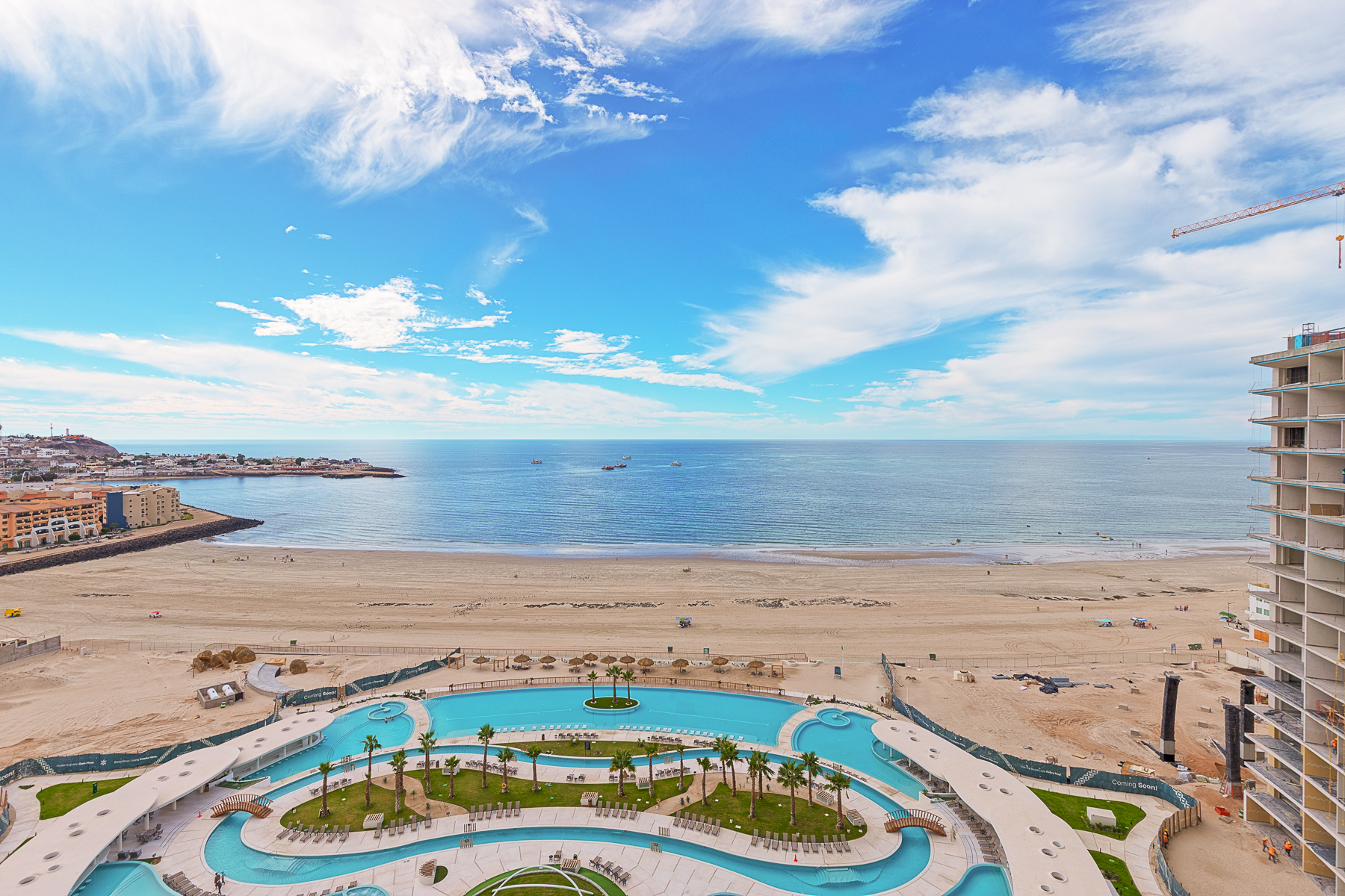 Every condominium includes a fully equipped kitchen, spa-style bathrooms, and washer/dryer convenience. Nestled on Sandy Beach in Puerto Peñasco, residents enjoy resort-style amenities including direct beach access, lazy river, multiple heated pools, jungle-gym for families, fitness center, and plenty more.